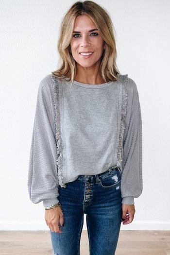 Long Sleeve Tops | Women Light Grey Ribbed Backless Drop Sleeve Top