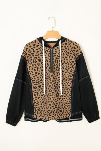 Sweatshirts & Hoodies | Women Brown Leopard Patchwork Quarter Zip Hoodie