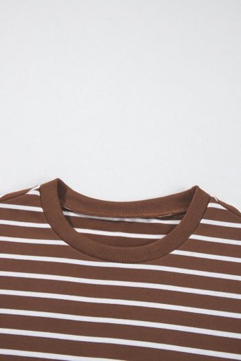 Sweatshirts & Hoodies | Women Coffee Striped Long Sleeve Round Neck Loose Fit Sweatshirt