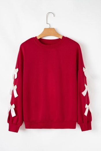 Sweatshirts & Hoodies | Women Fiery Red Sweet Bowknot Round Neck Sweatshirt
