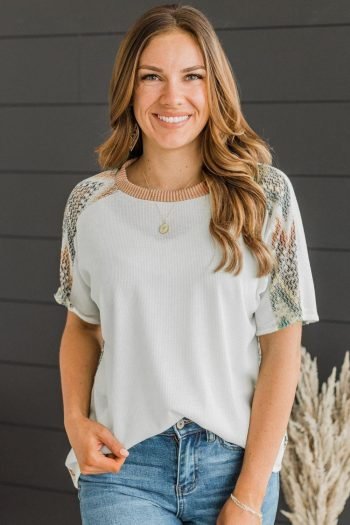 T Shirts | Women White Chevron Patchwork Raglan Sleeve Corded T Shirt