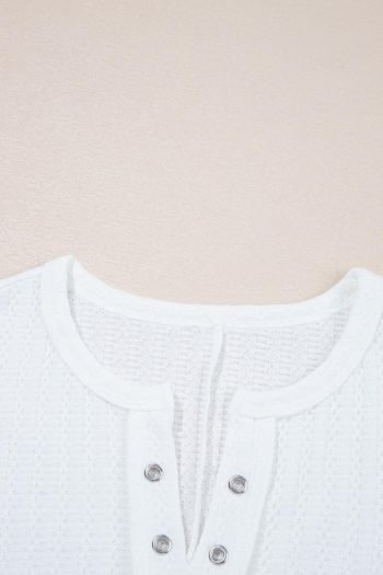 T Shirts | Women White Textured Split Neck Short Sleeve Top