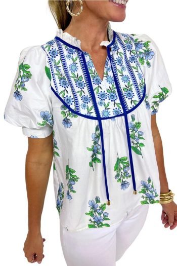 | Tag | Color White,Pattern Floral,Style Boho,Pattern Alloverprint,Detail Ruffle,Occasion Vacation,Season Summer,Year 2025 | ||