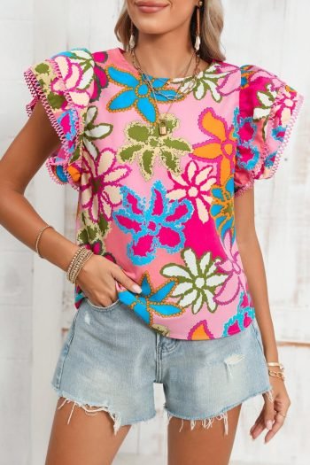 Blouses | Women Multicolor Floral Print Boho Top Tiered Ruffle Sleeve Blouse