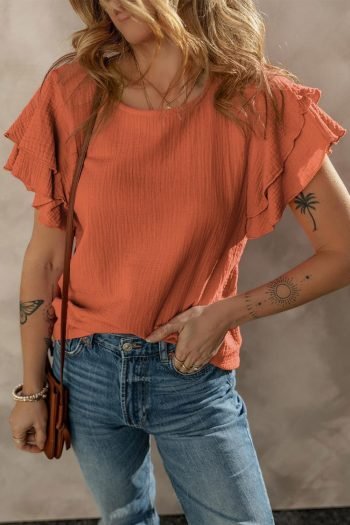 | Tag | Color Orange,Pattern Plain,Fabric Textured,Detail Ruffle,Fabric 100%Cotton,Style Casual,Season Summer,Year 2025 | ||