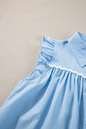 - The Top Features Delicate Ric Rac Trim And Charming Pleated Ruffles, Adding A Playful And Feminine Touch To Your Look.