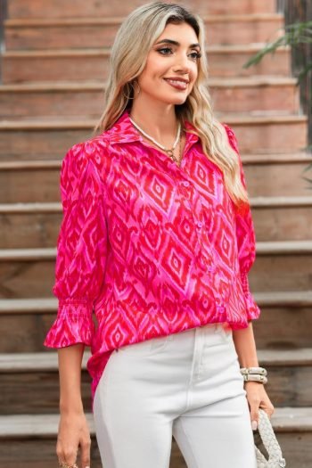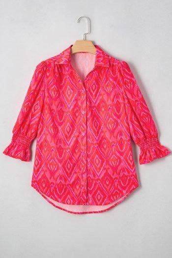 - Unleash Your Inner Bohemian Spirit With This Puff Sleeve Shirt, Featuring A Mesmerizing Abstract Pattern That Adds An Artistic Touch To Your Outfit.