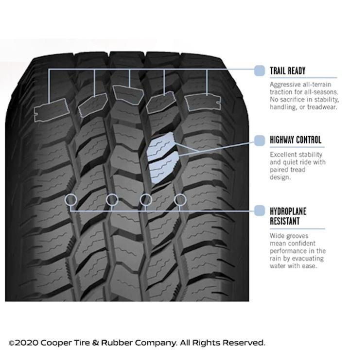 Enjoy your time behind the wheel when you are equipped with the Cooper Discoverer A/T All-Season LT265/75R16 123R Tire 55,000. It is designed to deliver a smooth experience on the highway and off. This all-season performance tire is made for owners of pickup trucks. Plus, it does well on both wet and dry conditions. This all-terrain tire is suited to tackle gravel and rocky ground when you go off-road.