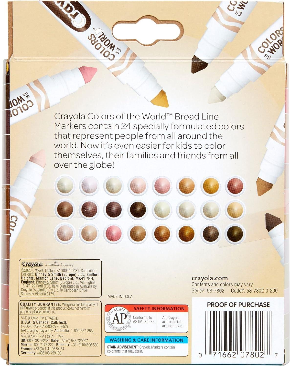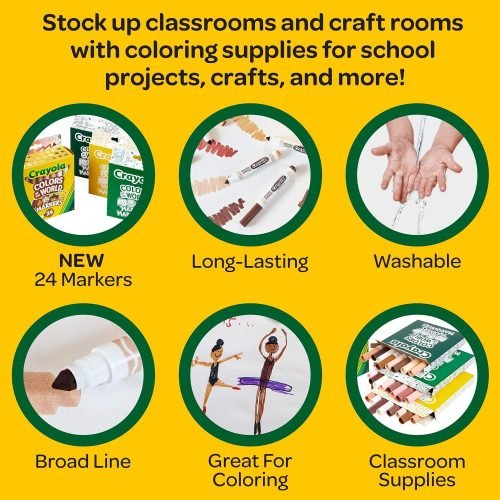 - 24 SKIN TONE MARKERS: This marker set features 24 Crayola colors that represent people from around the world.