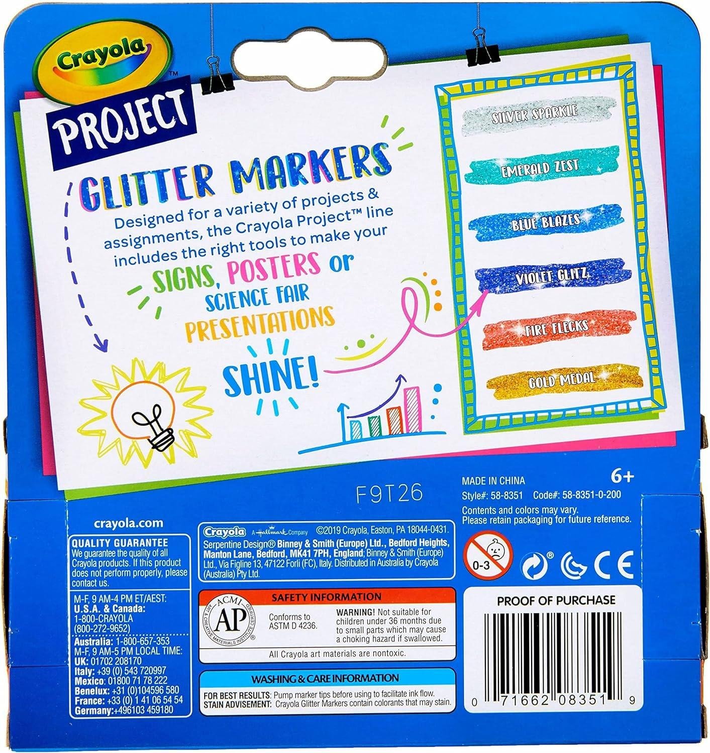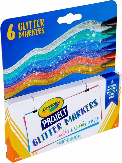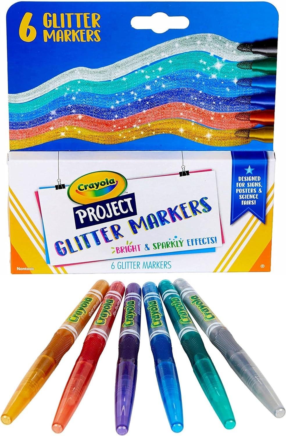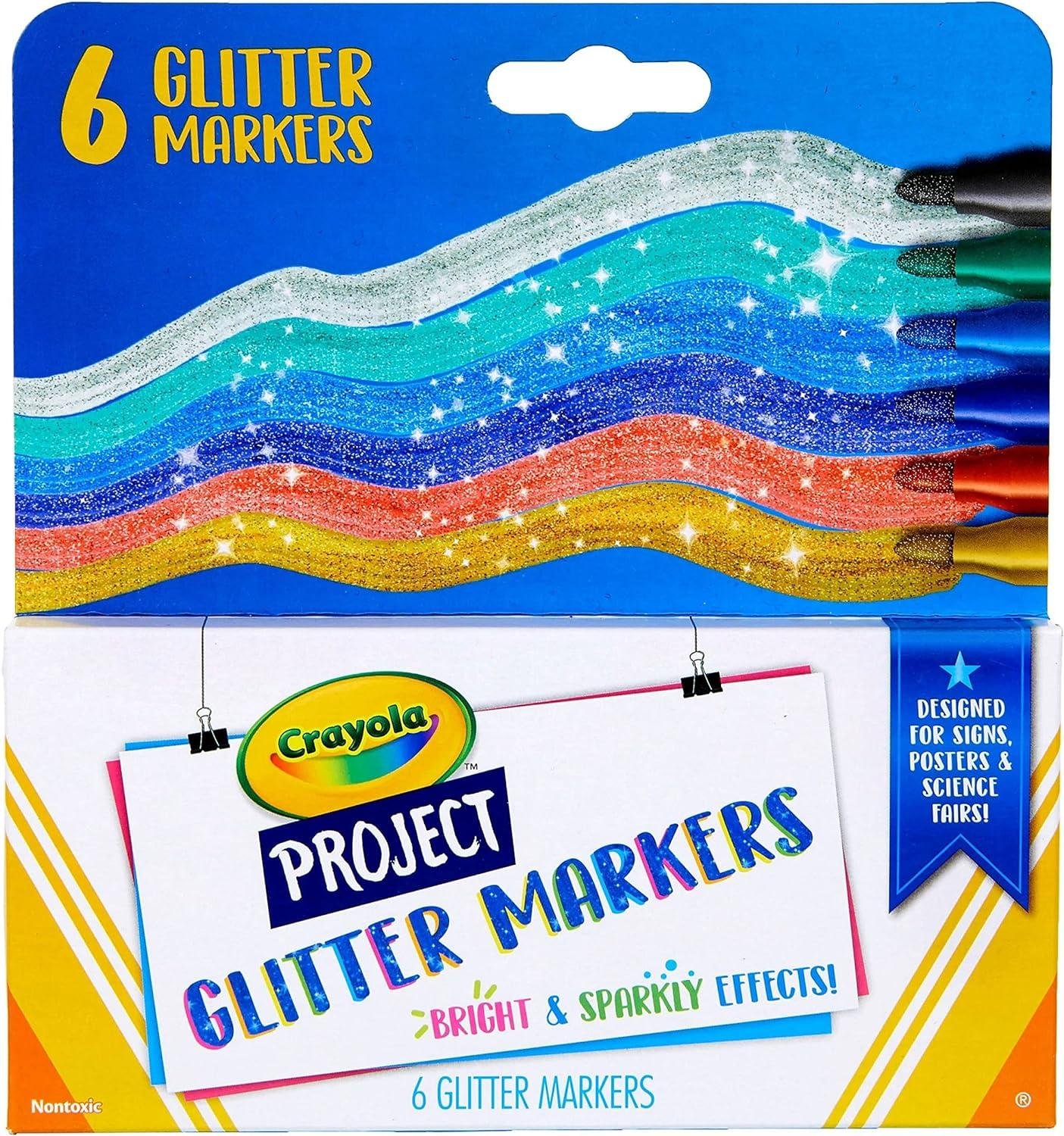 - CRAYOLA GLITTER MARKERS: Includes 6 glitter markers great for both light and dark surfaces.