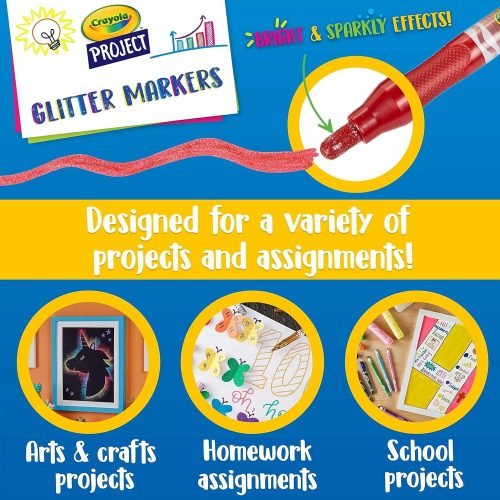 - ART SUPPLIES: Glitter markers add an extra dazzling touch to school projects, homemade cards, crafts, and colorful art projects.