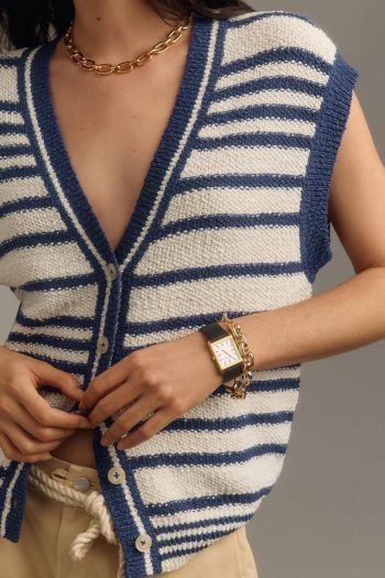 - Versatile And Trendy Striped Sweater Vest For Any Occasion.