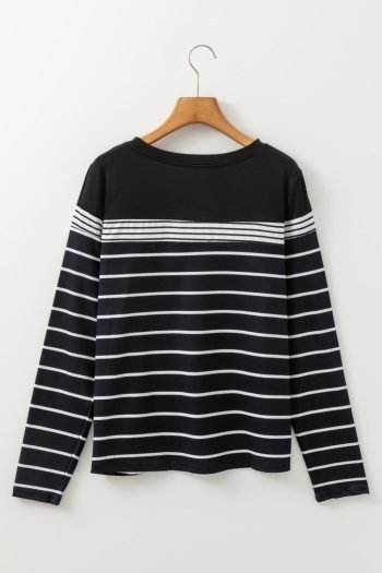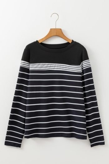 • The Striking Black Color Paired With Subtle Stripes Adds A Touch Of Sophistication To This Casual Top, Making It Versatile For Different Styling Options.