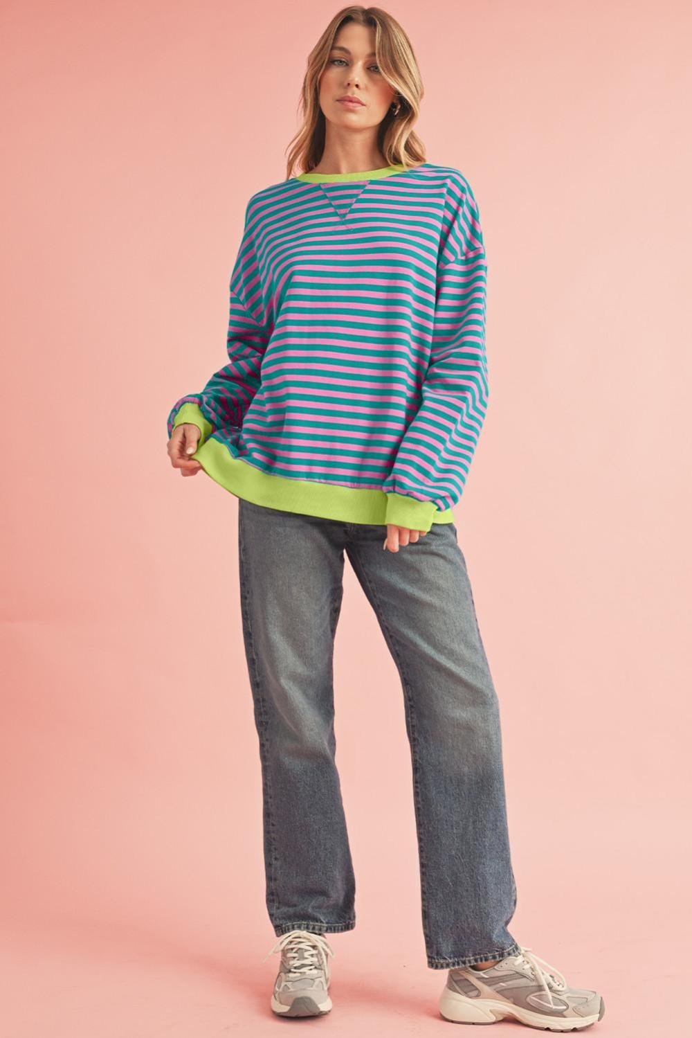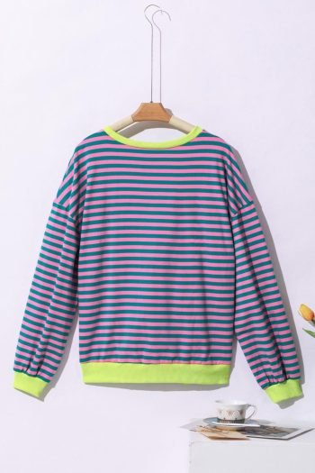 - Effortlessly Stylish, The Sweatshirt Combines Casual Charm With A Bold Striped Design And Eye-Catching Contrast Binding For A Unique Look.