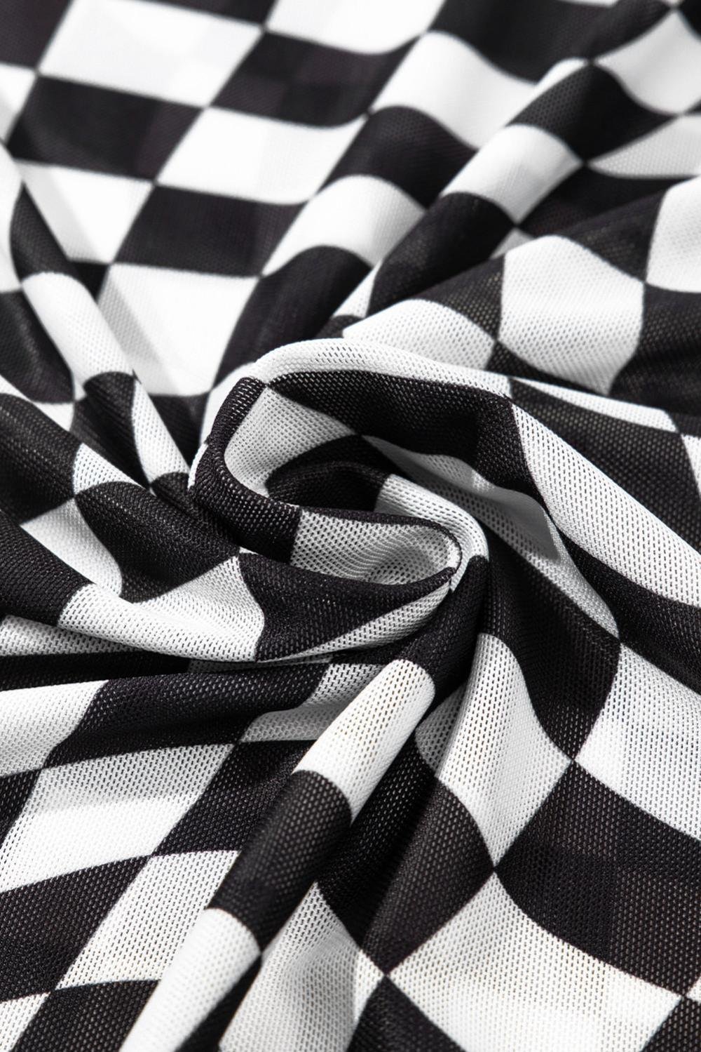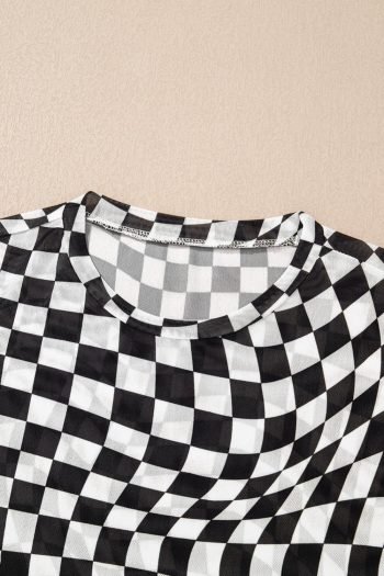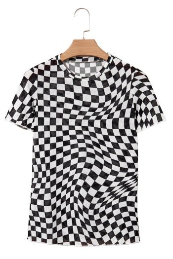 T Shirts | Women Black Checker Mesh Crew Neck T Shirt