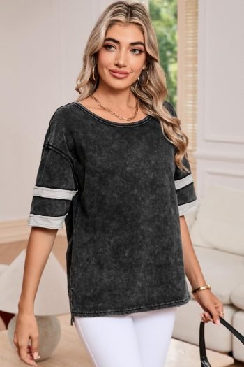- Embrace A Classic Look With A Twist In This Black Vintage Stripe Sleeve Cotton T-Shirt, Perfect For Casual Outings Or Laid-Back Days.
