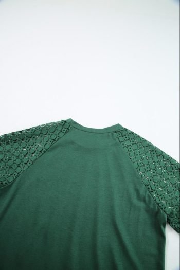 - The Tee Is A Trendy And Versatile Piece, Featuring Seamed Detailing And Contrast Lace Raglan Sleeves For A Stylish And Unique Look.
