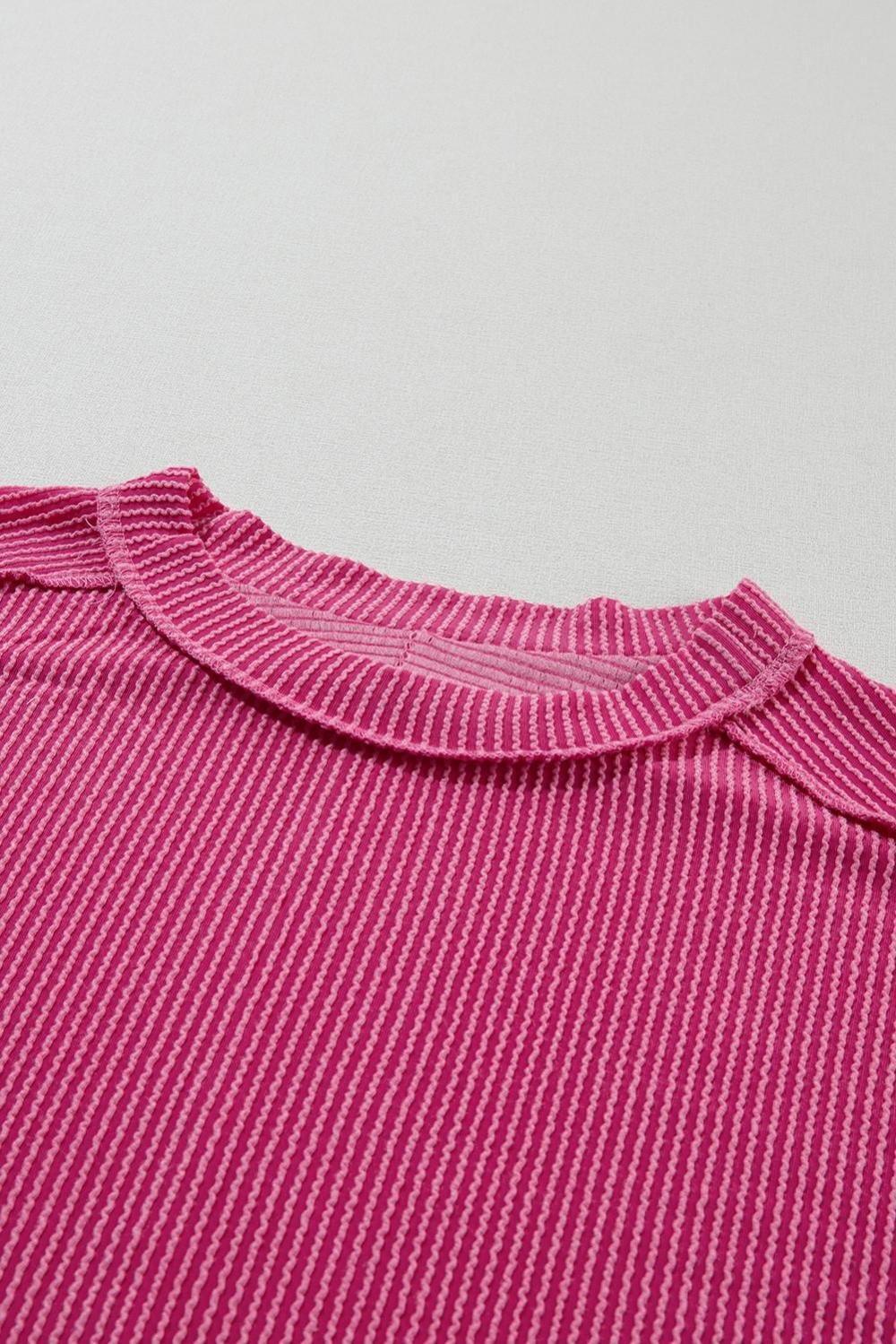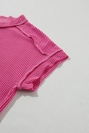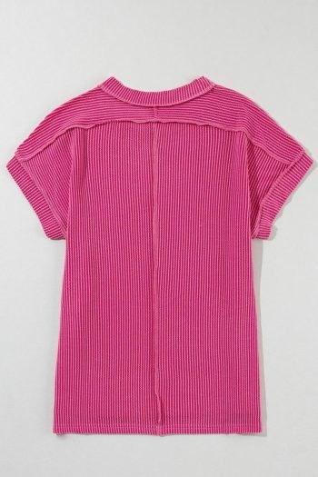 T Shirts | Women Rose Red Crinkle Rib Textured Knit Round Neck T Shirt