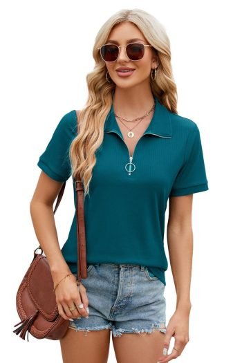 - Featuring A Unique Zipper Detail On The Collar, This Short Sleeve Tee Adds A Touch Of Sophistication To Your Casual Look.