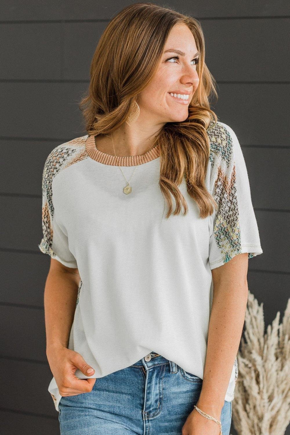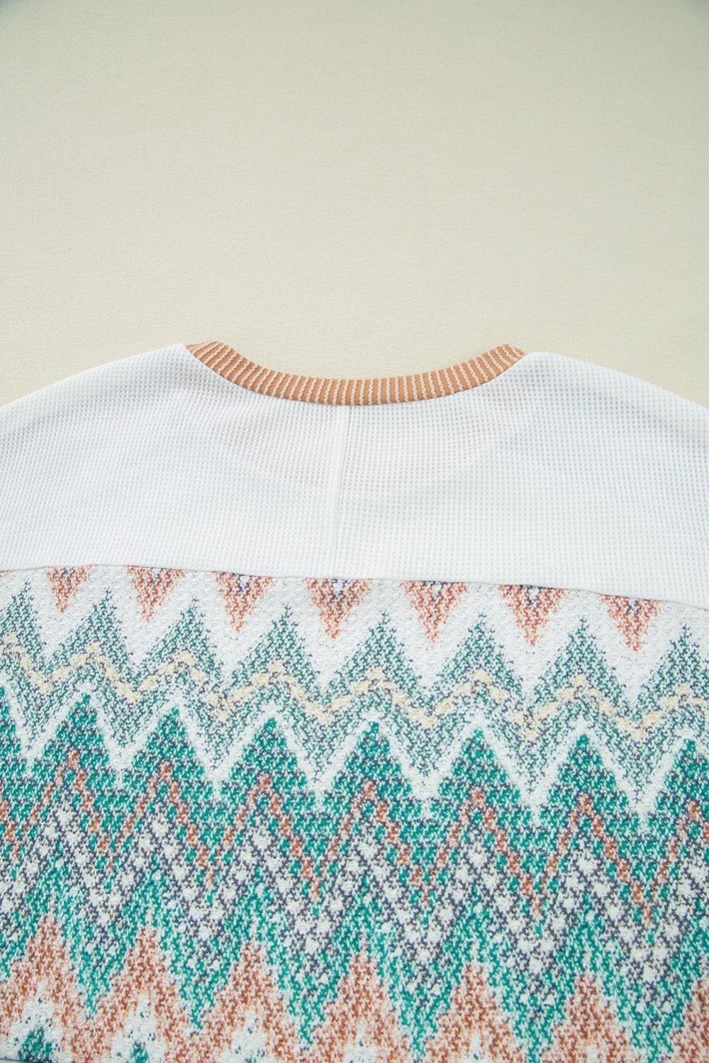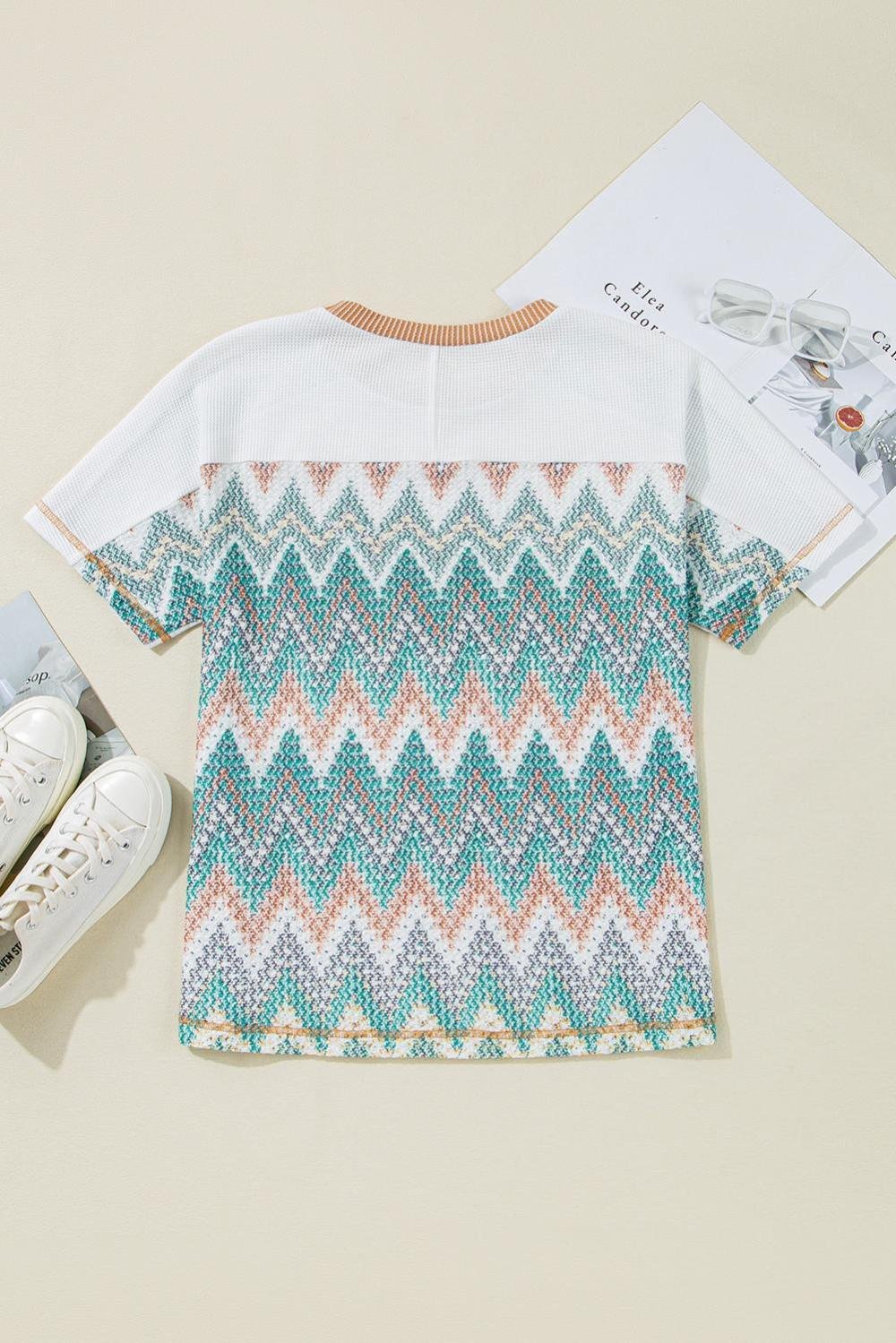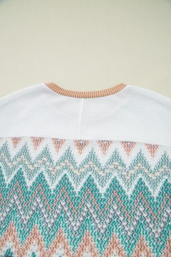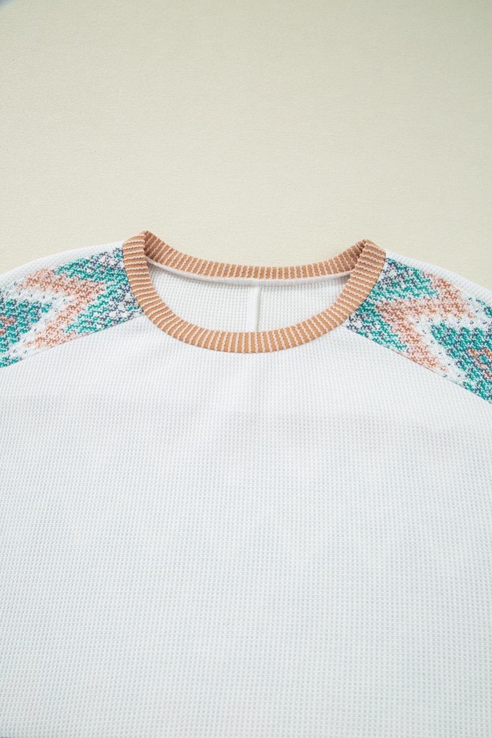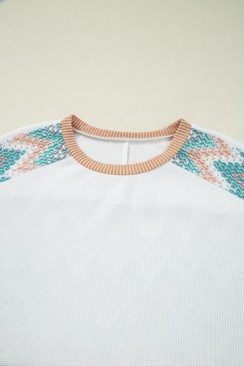 T Shirts | Women White Chevron Patchwork Raglan Sleeve Corded T Shirt