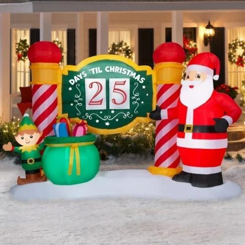 Countdown to Christmas with Santa and Elf Holiday Inflatable 9 Foot Wide with Repair Patch