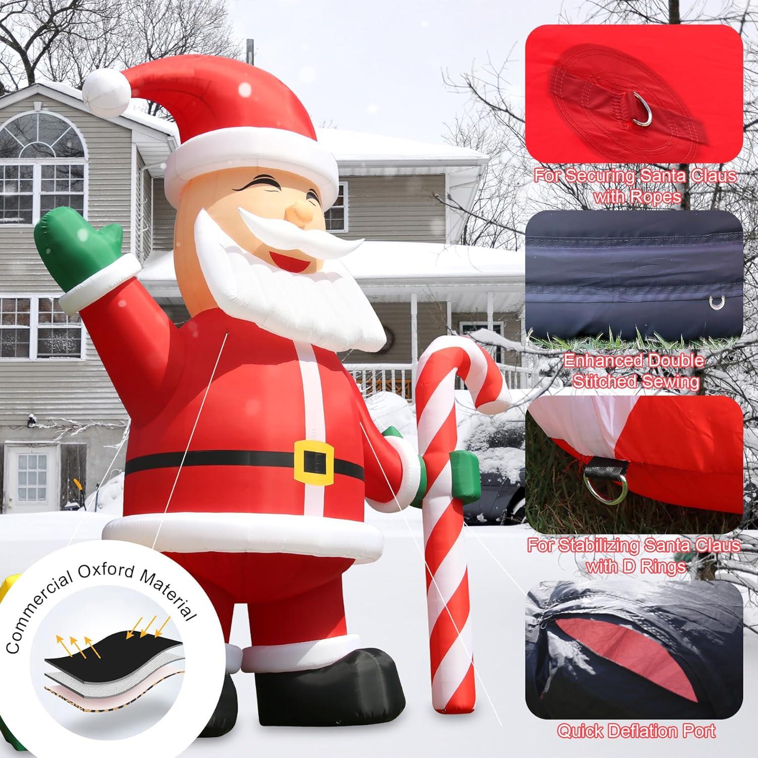 - ♧♧High Quality Durable Material♧: Our Giant Inflatable Santa Claus is made of premium 210D oxford which is Environmental-Protection and Waterproof, Wind Resistant, Snow Resistant.