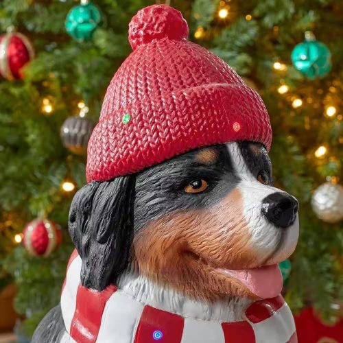 Christmas Lighted Blow Mold 30 Bernese Mountain Dog with Hat & Scarf – 30 Inch Tall Pre-Lit LED Blow Molded Plastic for Indoor & Outdoor Home Yard Xmas Decoration