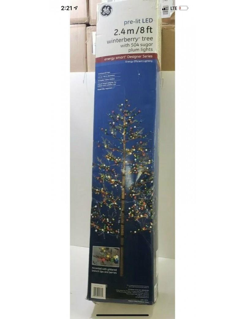 GE Winterberry Tree with 504 Sugar Plum Lights- 8 FT tall Indoor/Outdoor NIB