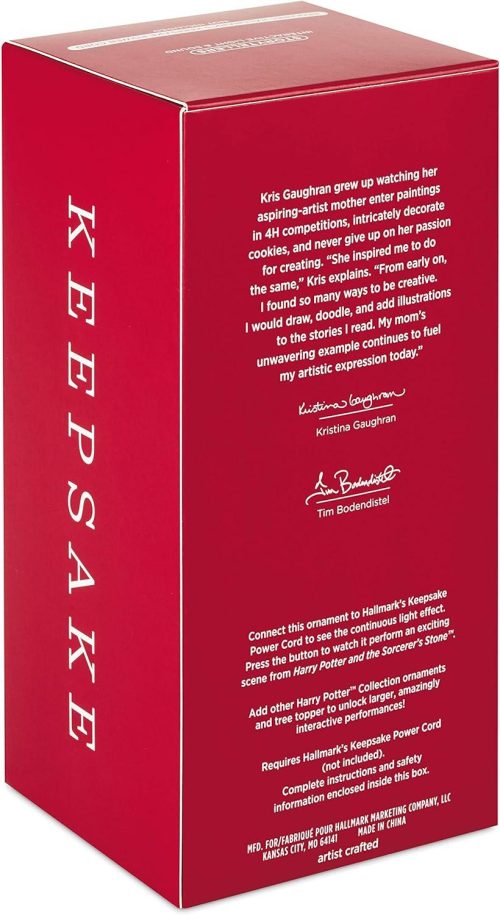 - POWER CORD SOLD SEPARATELY – Storytellers Interactive Light and Sound Christmas tree ornament. Connect this ornament to Hallmark’s Keepsake Power Cord (sold separately) to see the continuous light effect. Press the button to watch it perform an exciting scene from “Harry Potter and the Sorcerer’s Stone.” No batteries necessary.