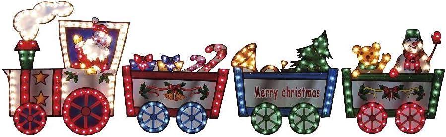 Holiday Home 118inch Lighted Christmas Train Sculpture Decoration Pre Lit Display Outdoor Christmas Yard Decoration Garden Yard Art Holiday Winter Display