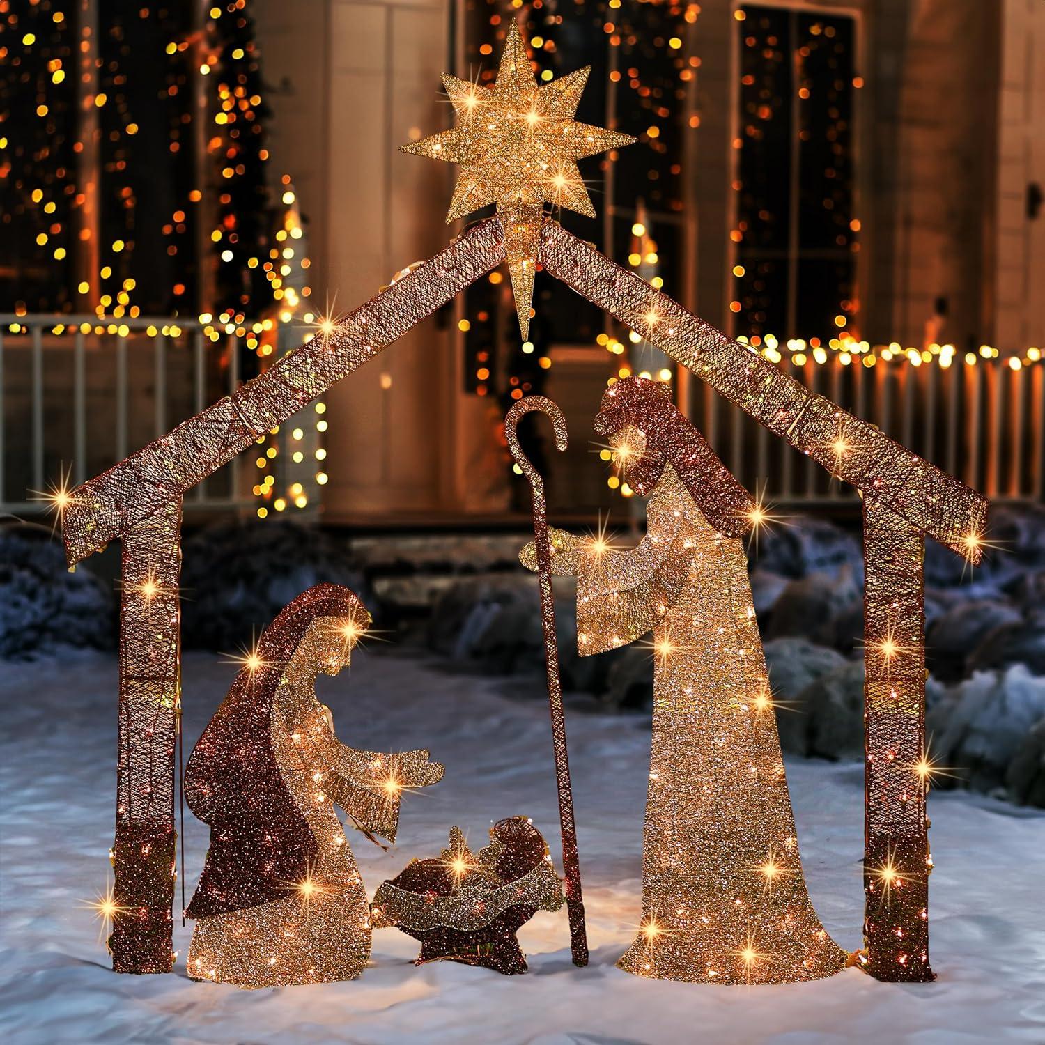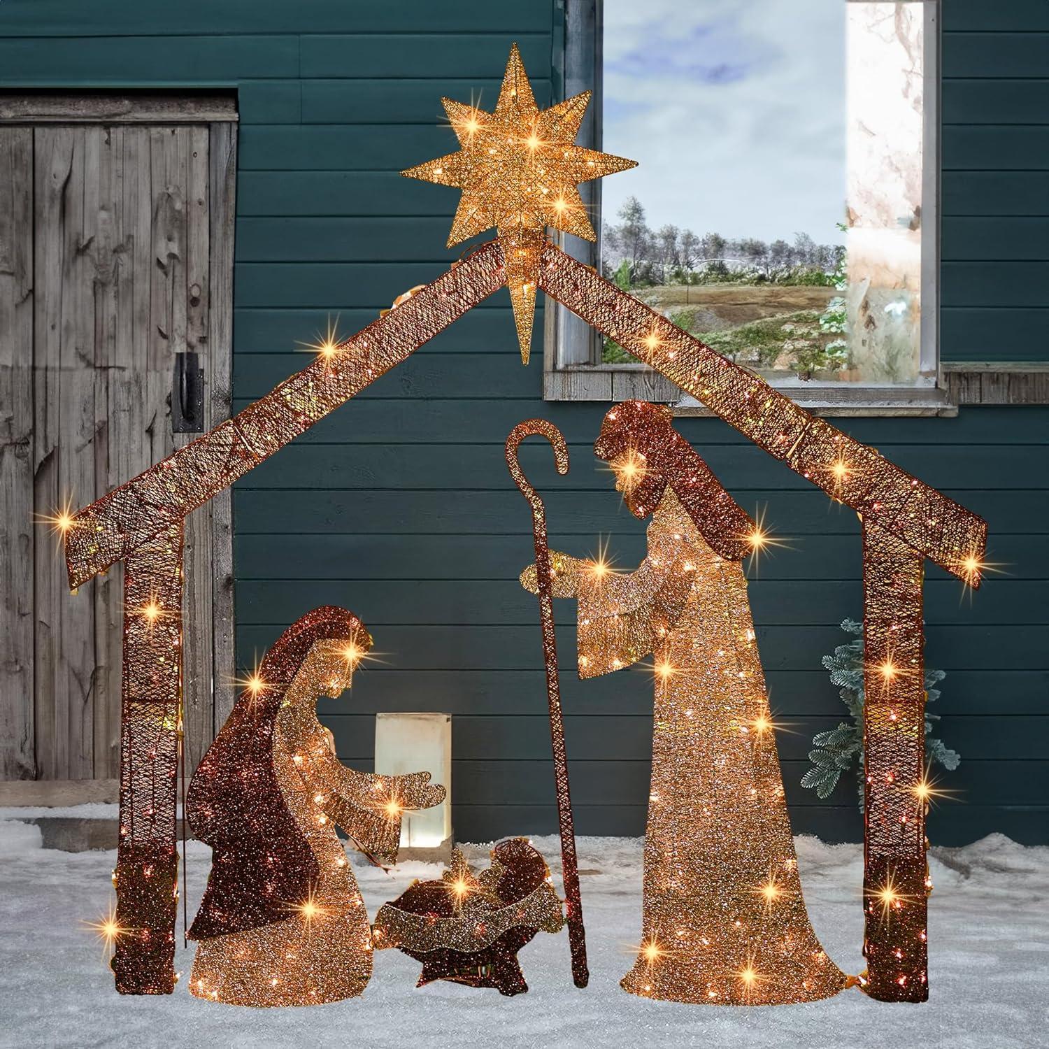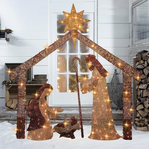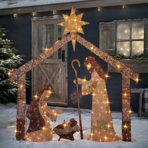- SUPERIOR QUALITY: The illuminated nativity scene is constructed with a sturdy metal frame for an appealing appearance. This outdoor lighted holiday display, with its suitable size, is perfect for indoor home decorations or outdoor placements like the porch, lawn, or yard. UL certified safer than other forms of power supply.