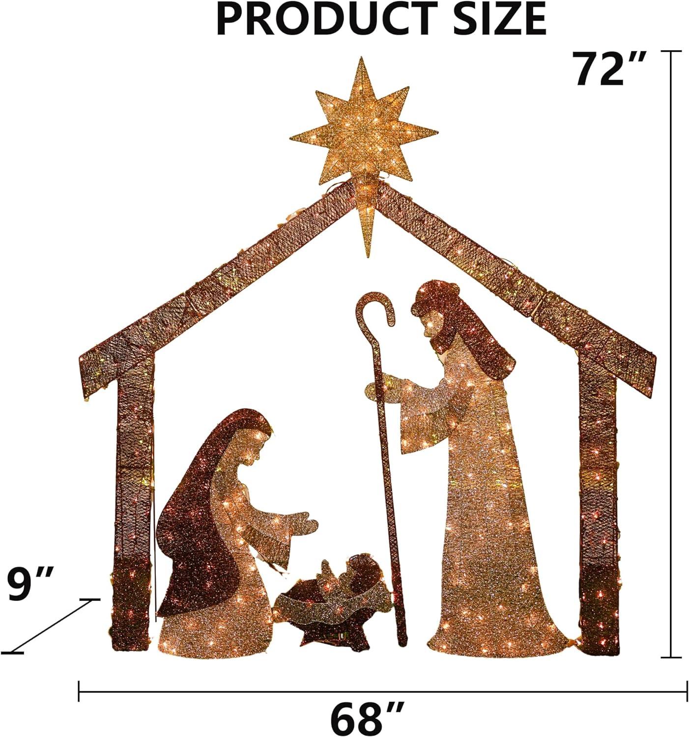 - PERFECR SIZE:DIMENSIONS: 68 “(L) x 9″(W) x 72″(H). Celebrate the coming Xmas season with a heartwarming snapshot of a Christmas Nativity Scene, intricately designed with festive details.