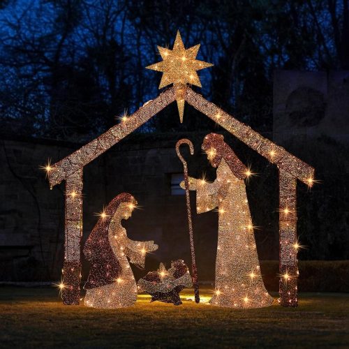 - 250 L WARM WHITE LIGHT: Our Outdoor Nativity Scene decoration set is thoughtfully designed in two dimensions. It features 250 INCANDESCENT warm white lights, which does more than just illuminate your home – it emits a 360-degree friendly warmth lighting up the night.
