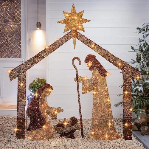 - NATIVITY SCENE WITH LED LIGHTS: Expertly designed from superior metal and mounted on a weighted platform, this nativity scene, adorned with strings of lights, radiates a gentle warmth, fostering a snug environment. It illuminates your home whilst spreading the essence of Christmas, promising delightful experiences for the forthcoming years.