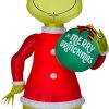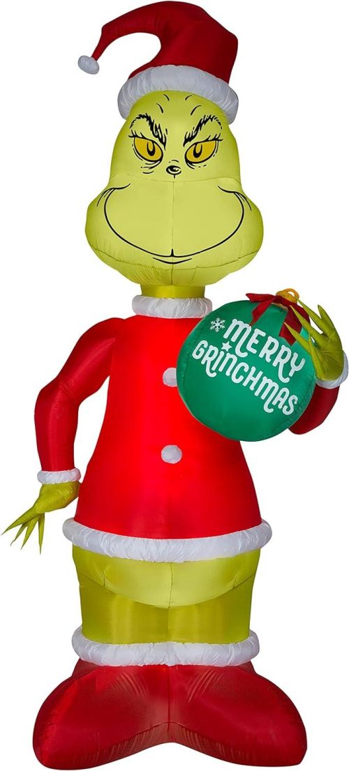 Gemmy Christmas Airblown Inflatable Grinch w/Ornament Giant Dr. Seuss, 11 ft Tall, Multi
