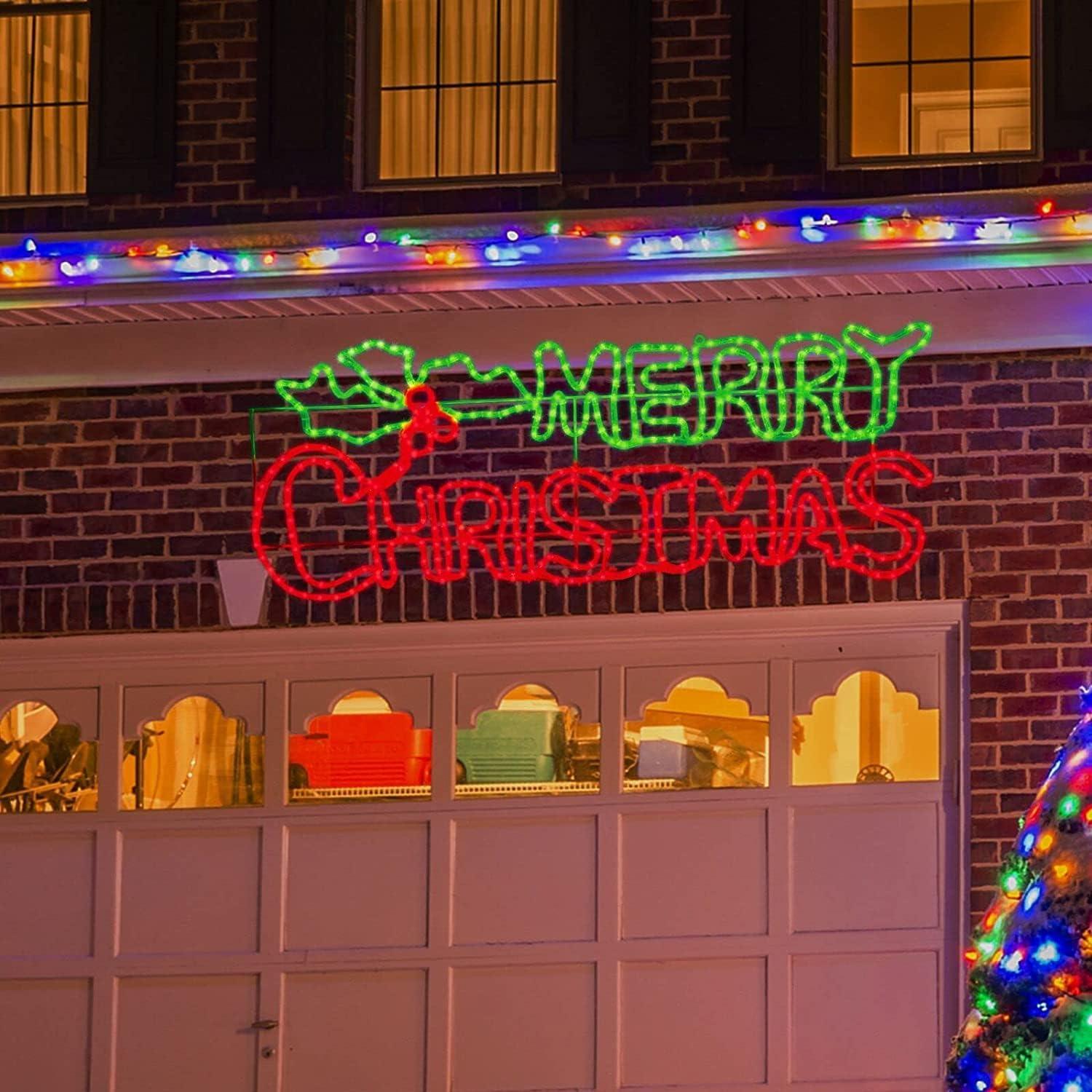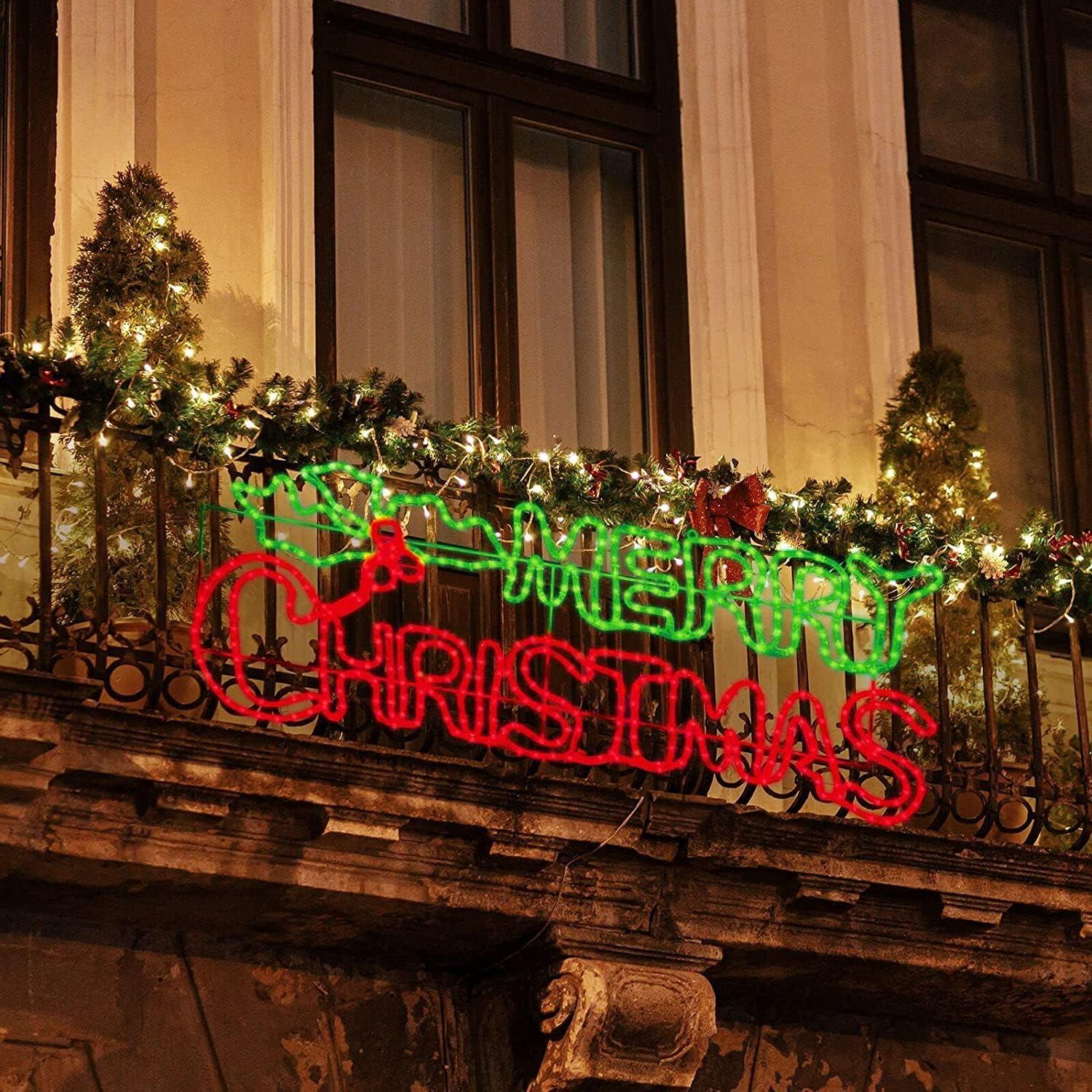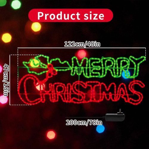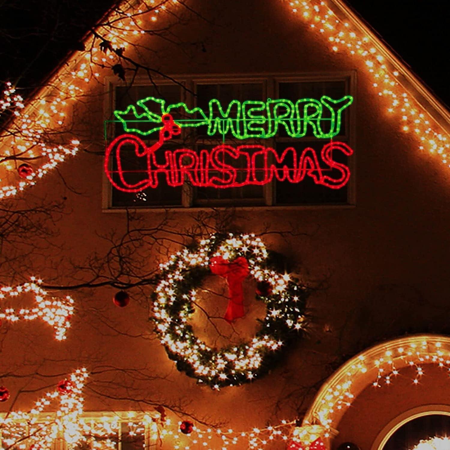 LAMPHOME [Large 48×18 504 LED Merry Christmas Neon Motif Super-Bright Green and Red LEDs Outdoor Christmas Decoration with UL Standard Adaptor Waterproof for Outdoor Home Party Wall Hanging Holiday