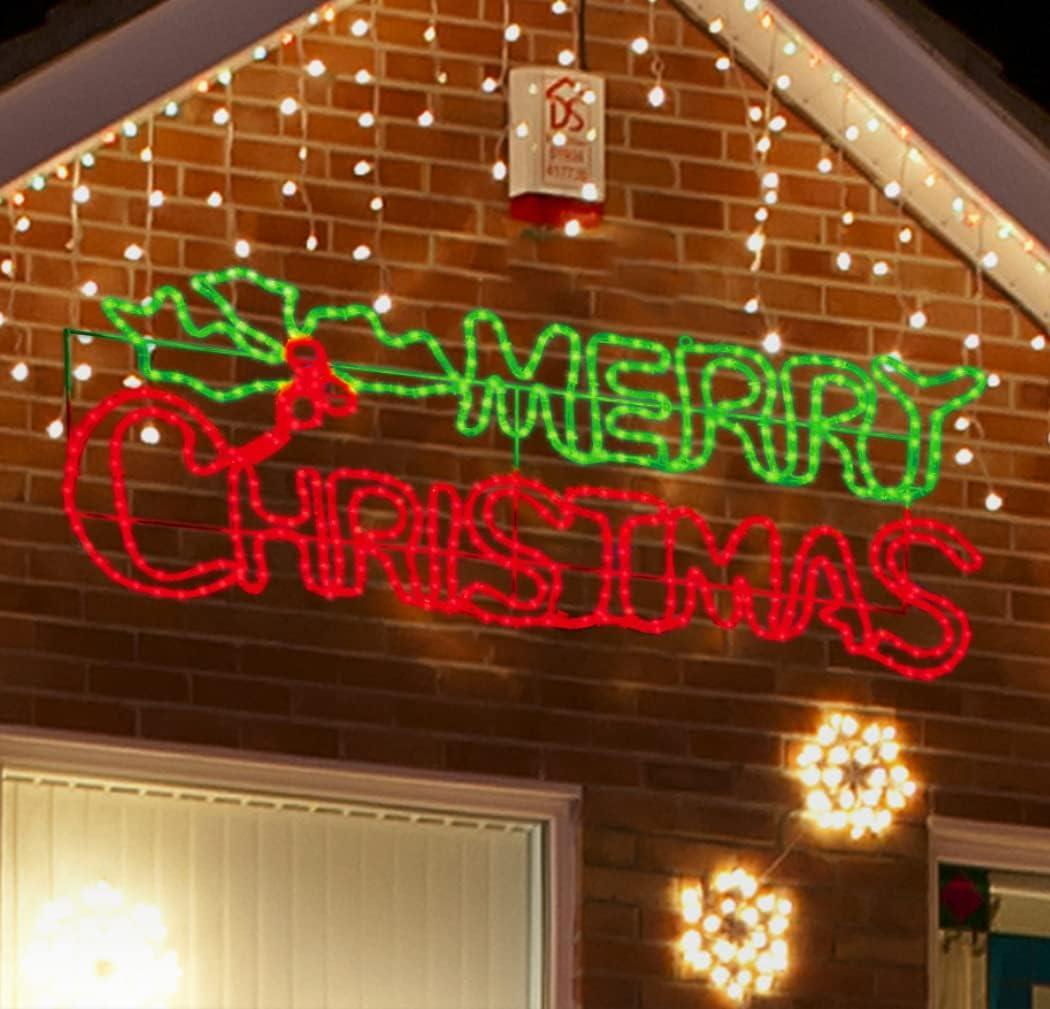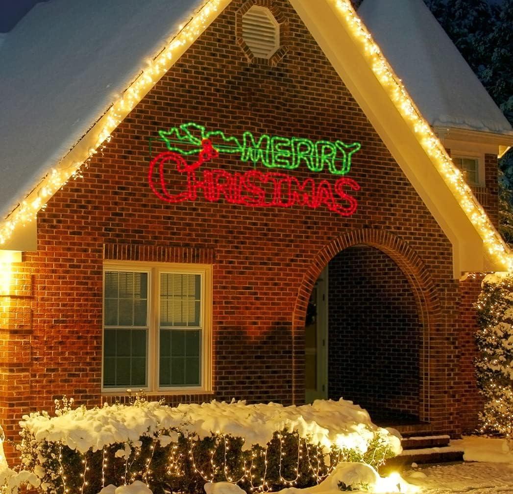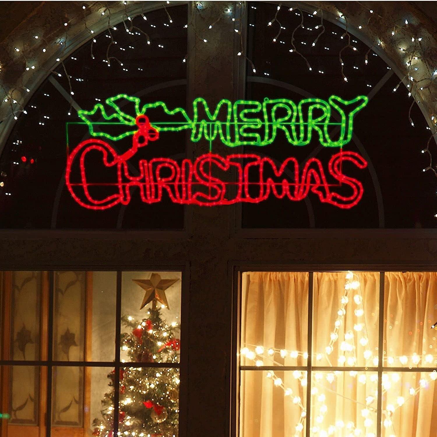 LAMPHOME [Large 48×18 504 LED Merry Christmas Neon Motif Super-Bright Green and Red LEDs Outdoor Christmas Decoration with UL Standard Adaptor Waterproof for Outdoor Home Party Wall Hanging Holiday