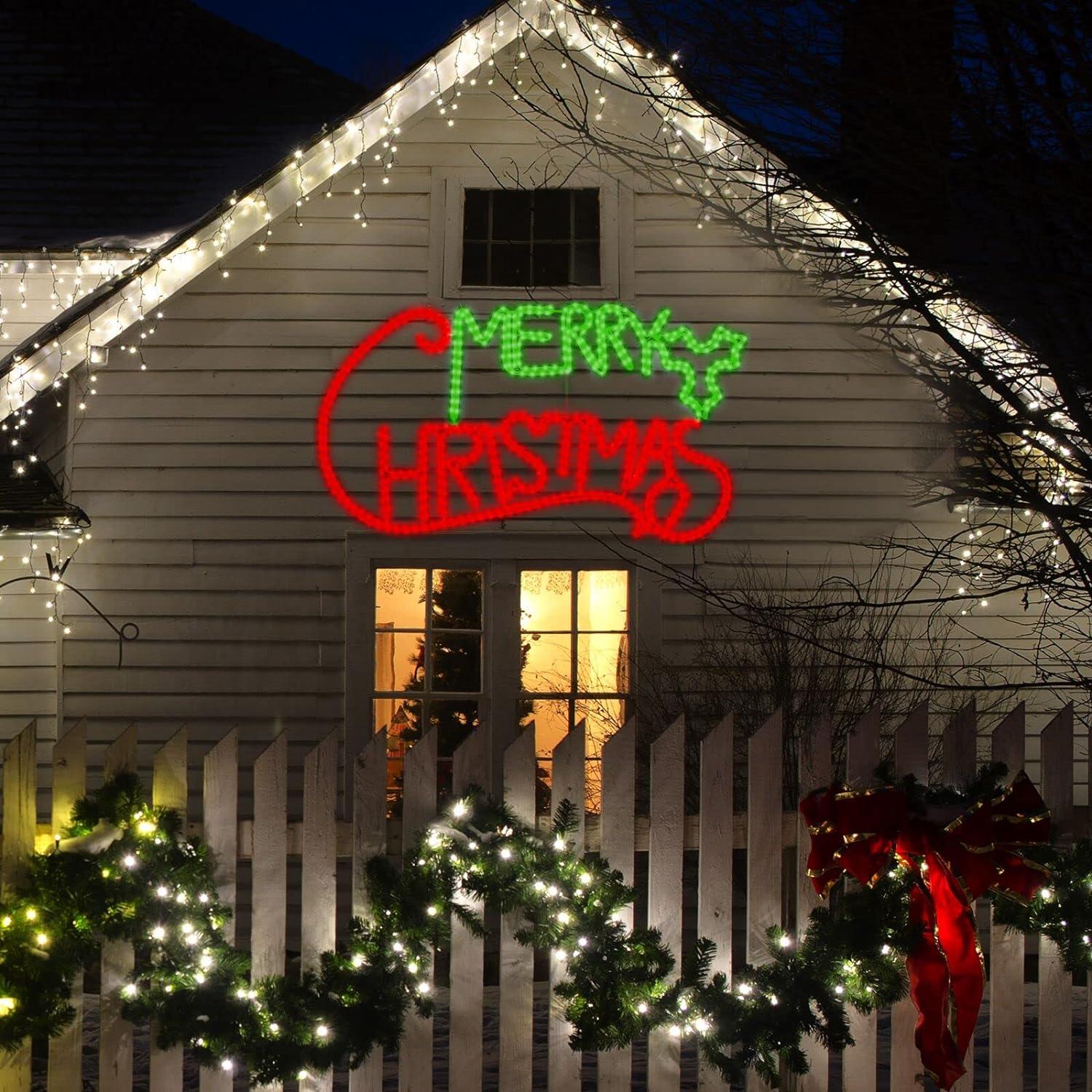 - 🎅MERRY CHRISTMAS Sign: This MERRY CHRISTMAS sign measures 49”X26”. Big enough for both indoor or outdoor use such as hanging on wall, patio, garden, garage door, balcony.
