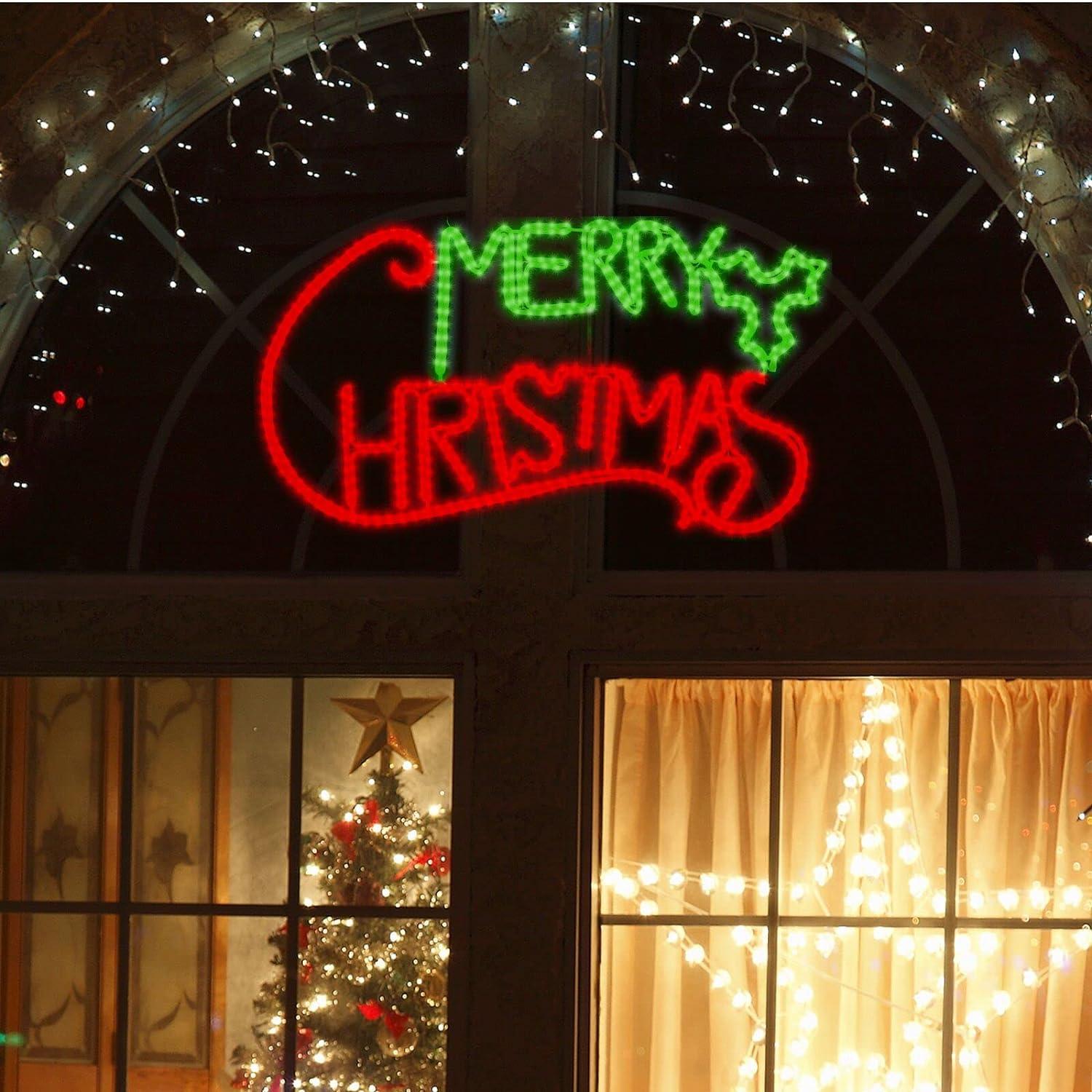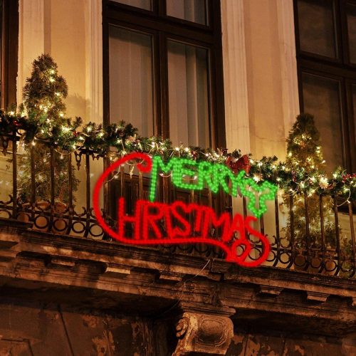 LAMPHOME [Large 49×26 630 LED Merry Christmas Neon Motif Super-Bright Green and Red LEDs Outdoor Christmas Decoration with UL Standard Adaptor Waterproof for Outdoor Home Party Wall Hanging Holiday