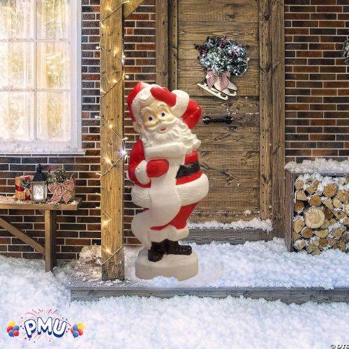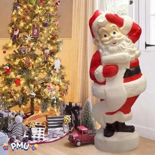 PMU Christmas Light-Up Santa Claus – Large Blow Mold Plastic Statue with 6′ Cord and Light – Perfect for Home, Yard, Garden Indoor & Outdoor Decoration – 43 Inch Santa Claus