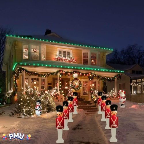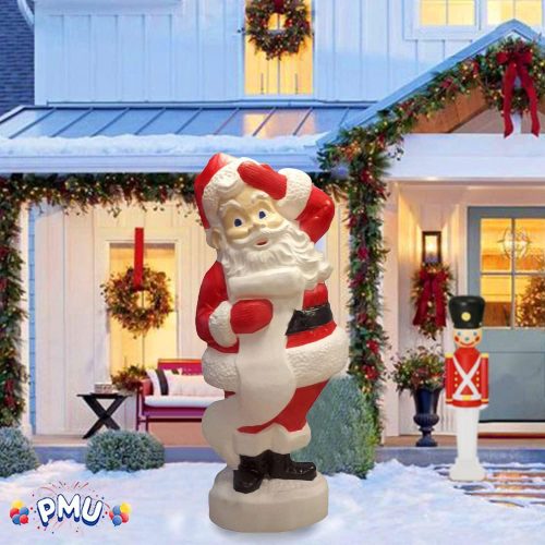 - CHRISTMAS SANTA CLAUS: PMU 43″ jolly Santa Claus is designed with durable weather-resistance plastic in the USA with a finishing of red coat, cap, and mitts, with a black belt and boots which makes it look very cute. This Christmas decor is a perfect choice for Christmas decoration. The dimensions of this Santa Claus are 40.5″ (H) x 9″ (W) x 13″ (L).