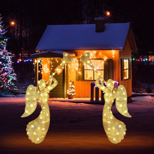 - What You Get: you will receive 2 pieces of Christmas pre lit angel decorations with trumpet, iconic wings and gold silver colors, a mesmerizing angel with a trumpet addition to your holiday decor, add a touch of elegance and charm to your yard, lawn or garden